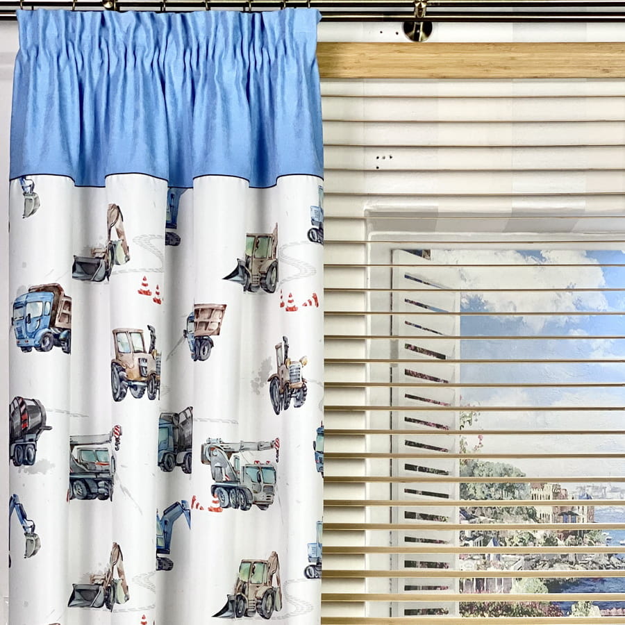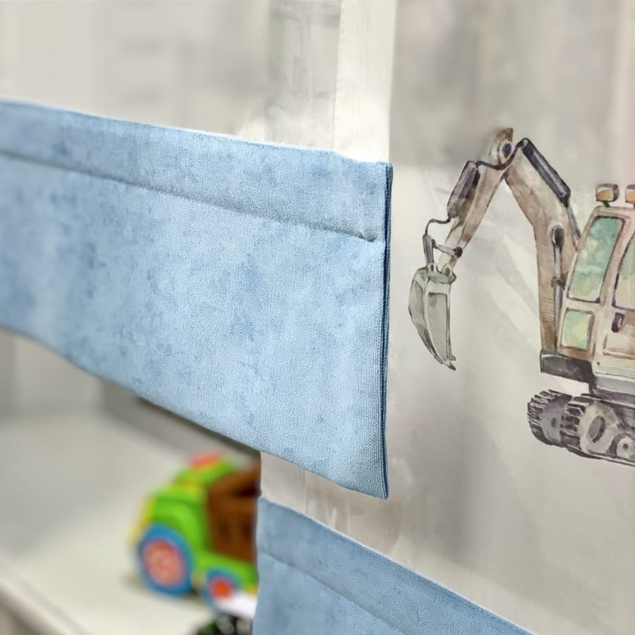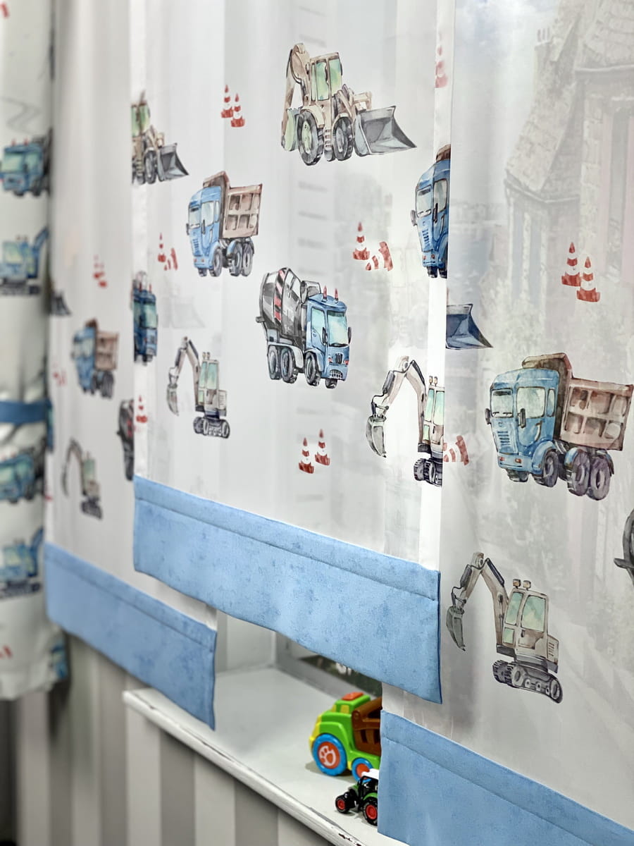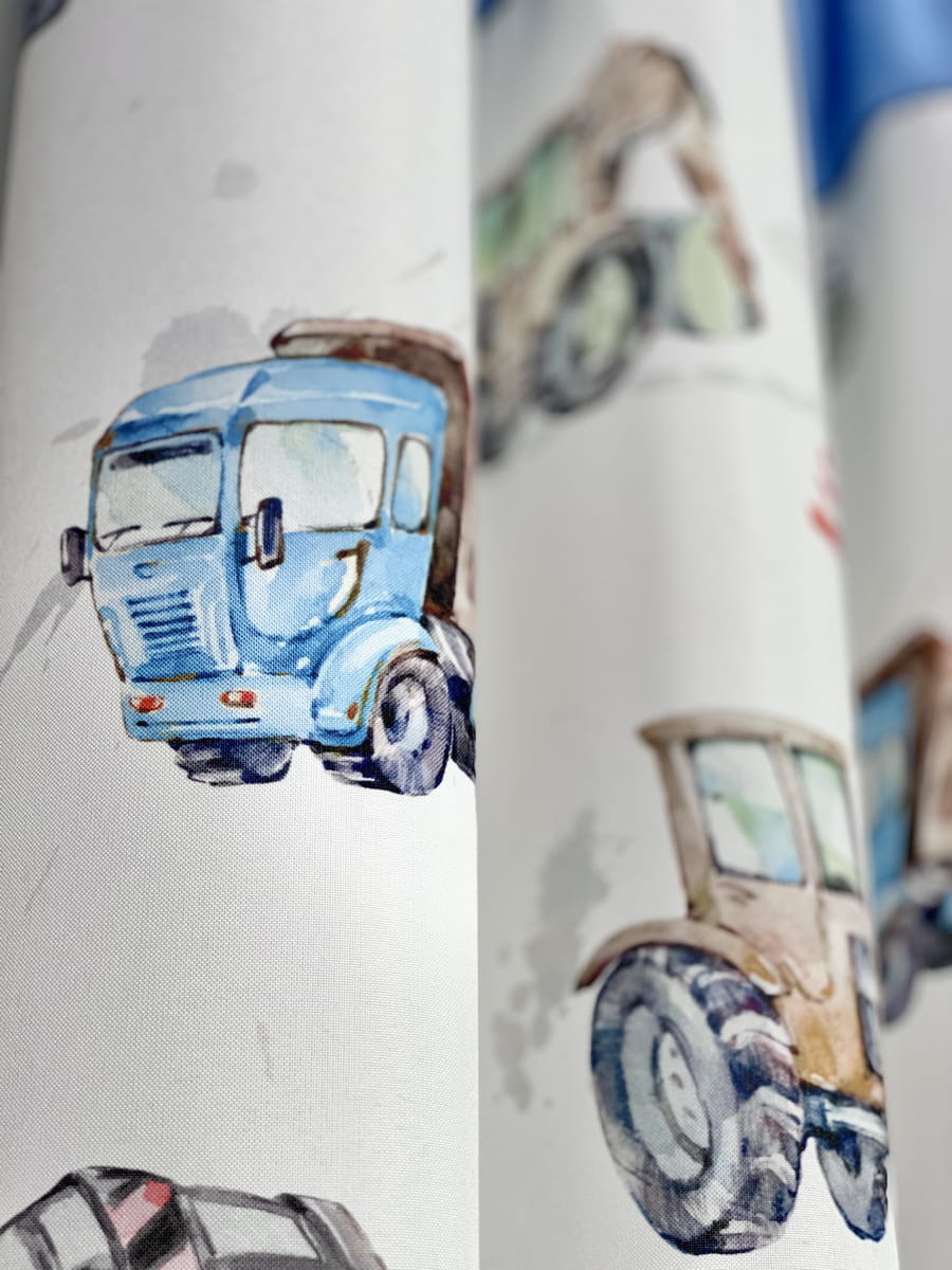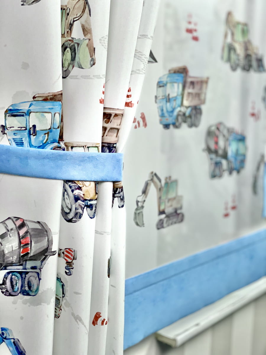 Komplet ozdobny. Panele i zasłony do pokoju dla chłopca BLUE LORRY.