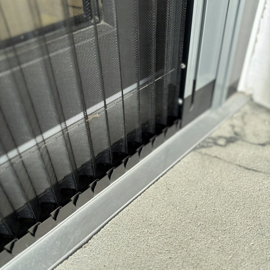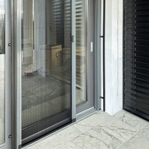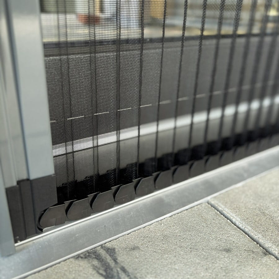 Plisowana siatka po złożeniu całkowicie chowa się w profilu aluminiowym. Tym samym zajmuje niewielką ilość miejsca po jej zsunięciu.