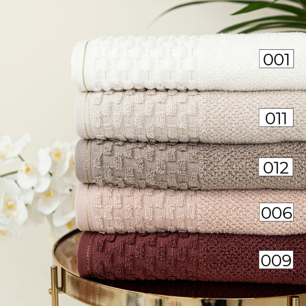 z tłoczoną bordiurą i złotą nitką, to doskonały wybór dla osób ceniących sobie komfort i jakość. Jego wysoka chłonność, miękkość i trwałość sprawiają, że jest to produkt uniwersalny, który sprawdzi się w każdej łazience.