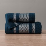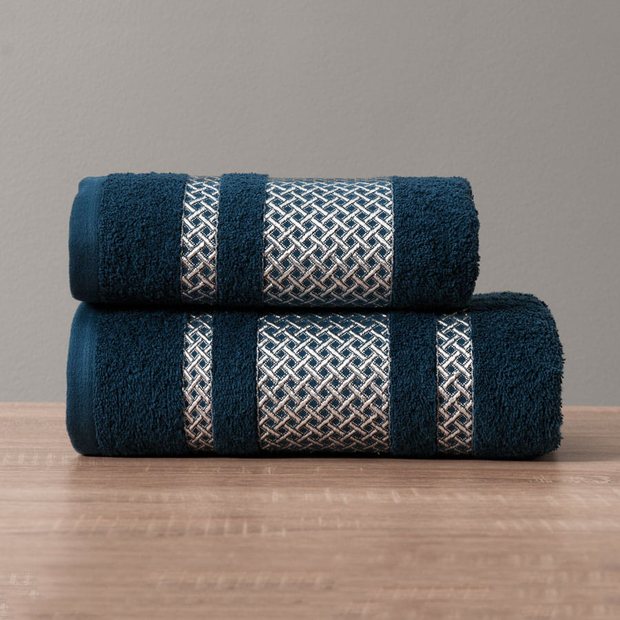 Ręcznik kolor granatowy ze srebrną bordiurą rozmiar 50x90 cm LIONEL