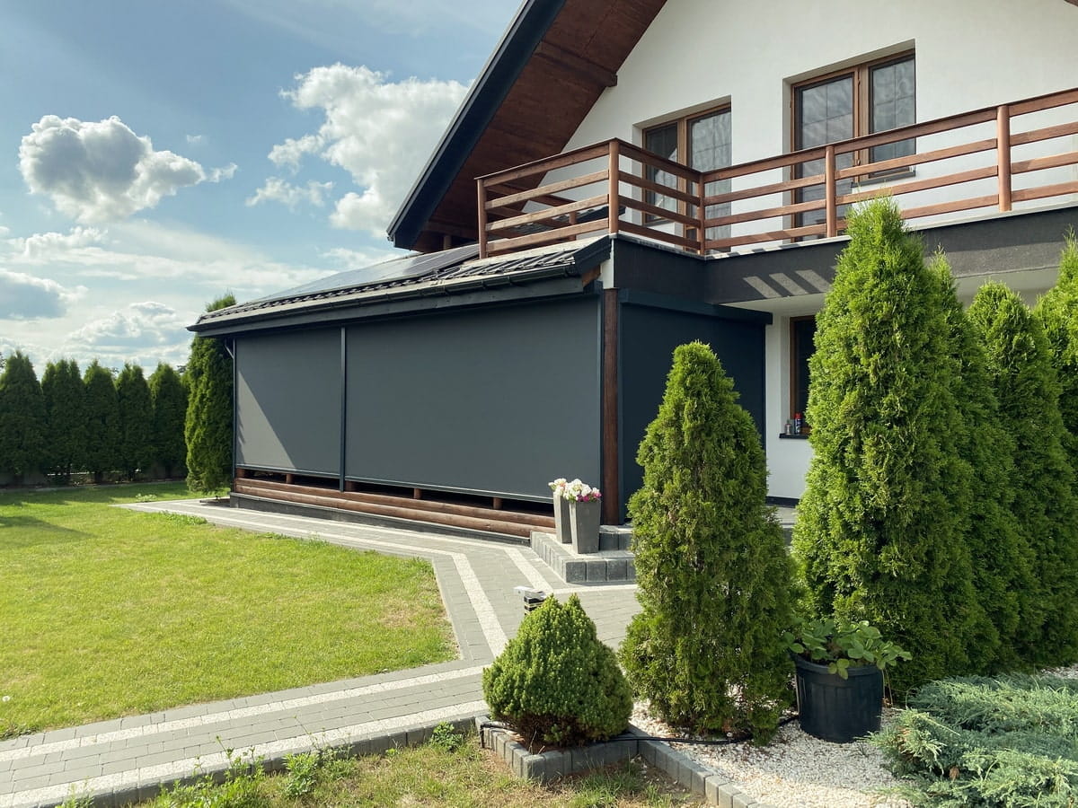 Nowoczesna roleta typu Screen zip z napędem elektrycznym do zastosowania na zewnętrz