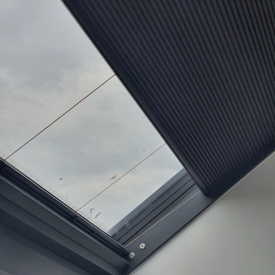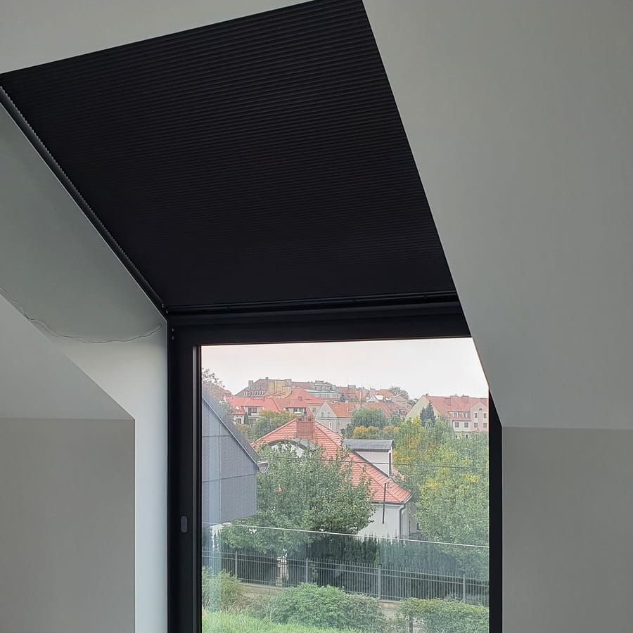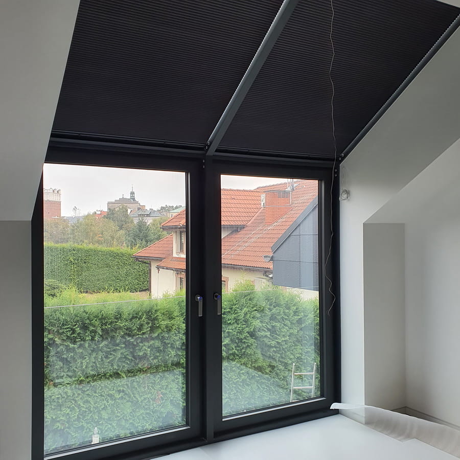 Plisa do okna dachowego w rozmiarze 100x160 cm z napędem elektrycznym.