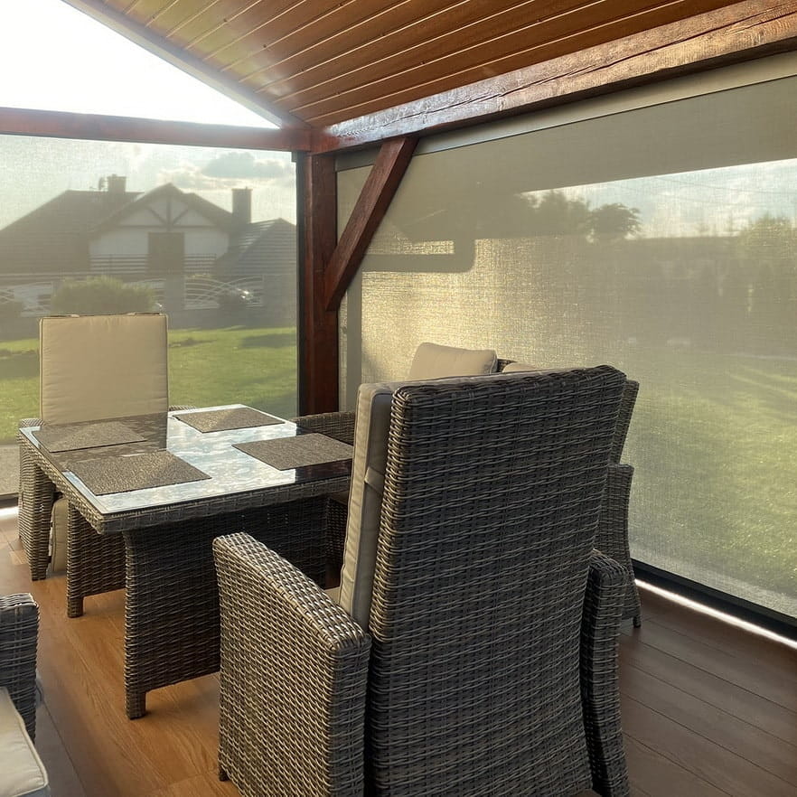- Prywatność: Tkanina screen zapewnia doskonałą prywatność, jednocześnie umożliwiając swobodny przepływ powietrza.