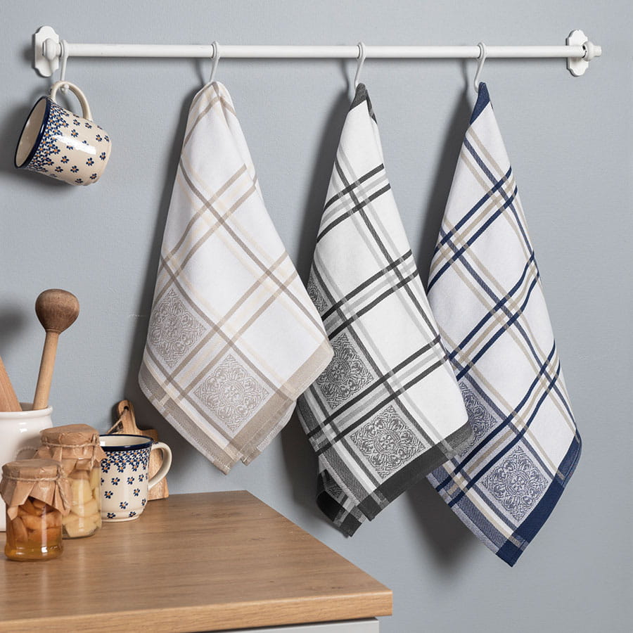 Ścierki kuchenne z bawełny dostępne są w różnych kolorach i wzorach, dzięki czemu z łatwością można je dopasować do wystroju każdej kuchni.
