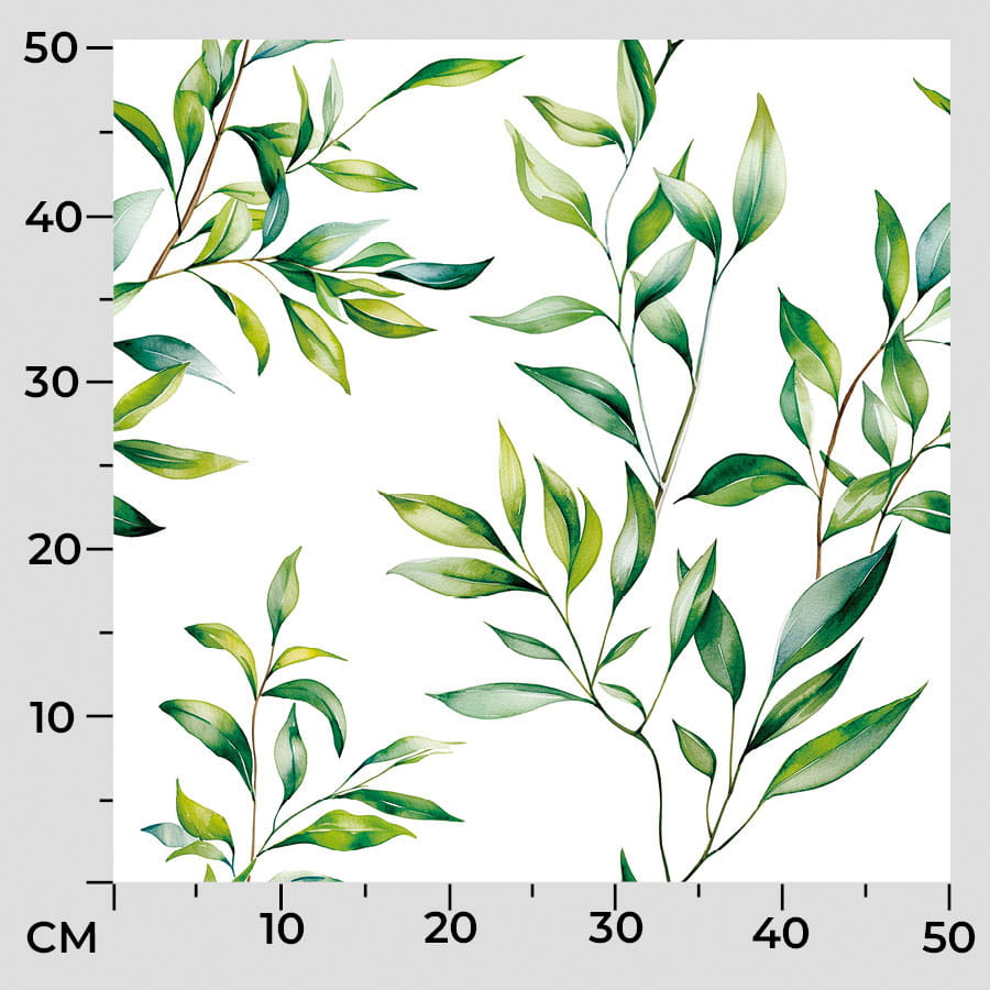 Bardzo miła w dotyku tkanina dekoracyjna z motywem liści. Idealna na zasłony i poszewki.