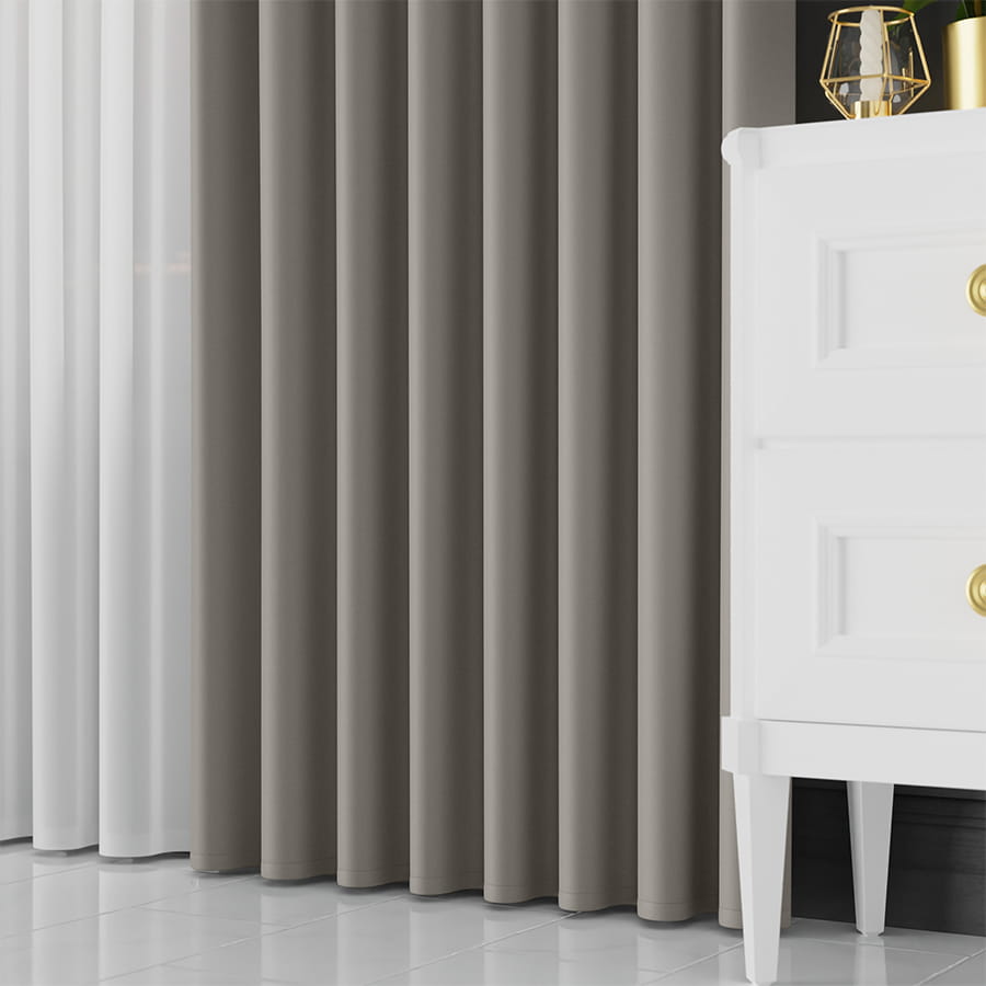 Tkanina zasłonowa na metry w kolorze ciemnym beżowo-szarym GRETA