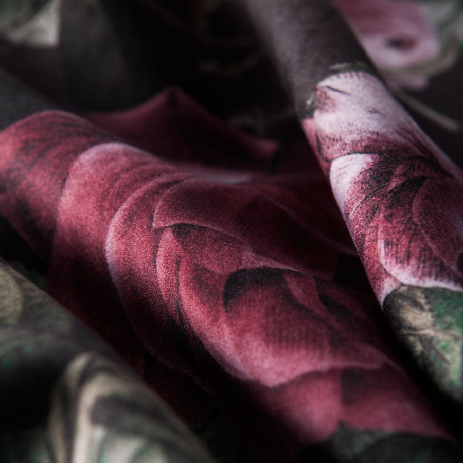 delikatna i przyjemna w dotyku, w kolorze czarnym z motywem kwiatowym. Dzięki unikatowej strukturze jest często porównywana do aksamitu oraz weluru.