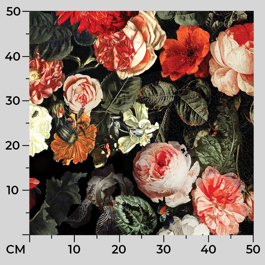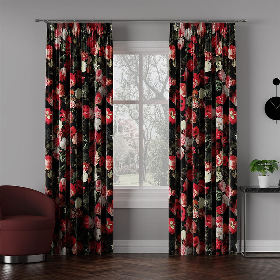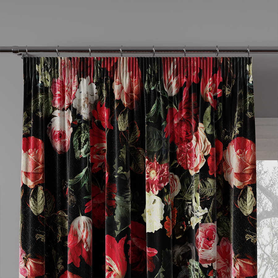 delikatna i przyjemna w dotyku, w kolorze bordo z motywem kwiatowym. Dzięki unikatowej strukturze jest często porównywana do aksamitu oraz weluru.