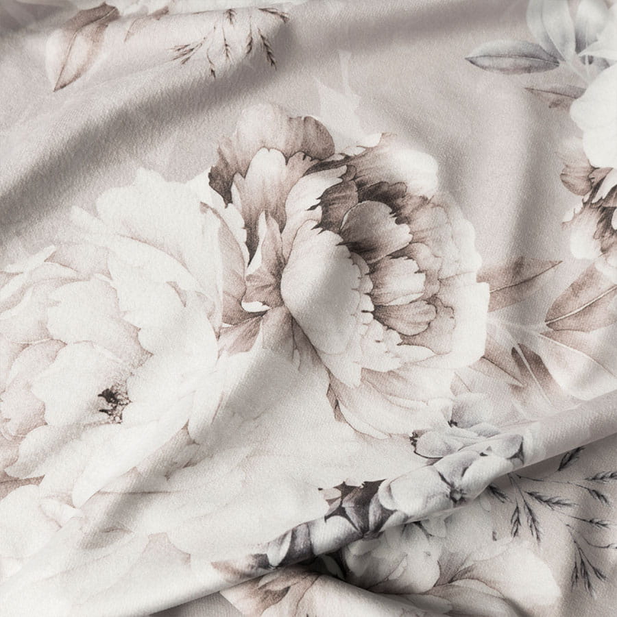 delikatna i przyjemna w dotyku, w kolorze beżowym z motywem kwiatowym. Dzięki unikatowej strukturze jest często porównywana do aksamitu oraz weluru. Tkanina ma delikatny, gęsty meszek, nie zaciąga się i nie mechaci oraz nie gubi nitek. Dzięki swoim licznym zaletom, tkanina doskonale sprawdzi się w roli materiału na elementy wystroju wnętrz.