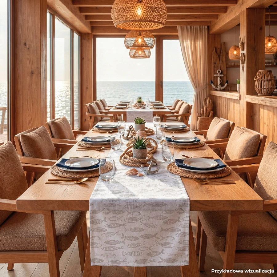 Ta tkanina dekoracyjna to idealne rozwiązanie dla osób szukających niebanalnych wzorów. Motyw ryb nadaje wnętrzom i tarasom lekkości oraz wakacyjnego klimatu, przywołując wspomnienie nadmorskich kurortów. Dzięki zaawansowanym właściwościom wodoodpornym materiał ten doskonale sprawdzi się w trudniejszych warunkach, chroniąc przed wilgocią i nagłym deszczem.