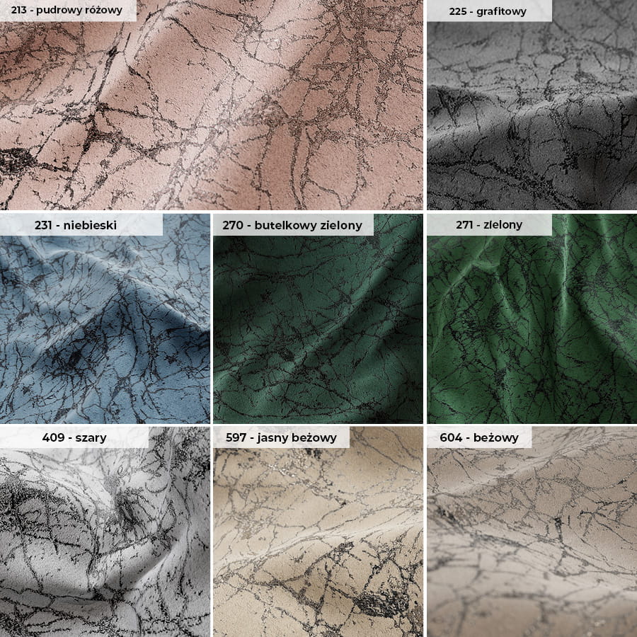 z żakardowym zdobieniem imitującym efekt marmuru. Idealnie wkomponuje się we wnętrza nowoczesne, jak i te urządzone w klasycznym stylu. Tkanina ma uniwersalne zastosowanie, można z niej uszyć nie tylko zasłony ale również obrusy i poszewki. Dostępna jest w stonowanych kolorach, co umożliwia dobór koloru do każdego wnętrza.