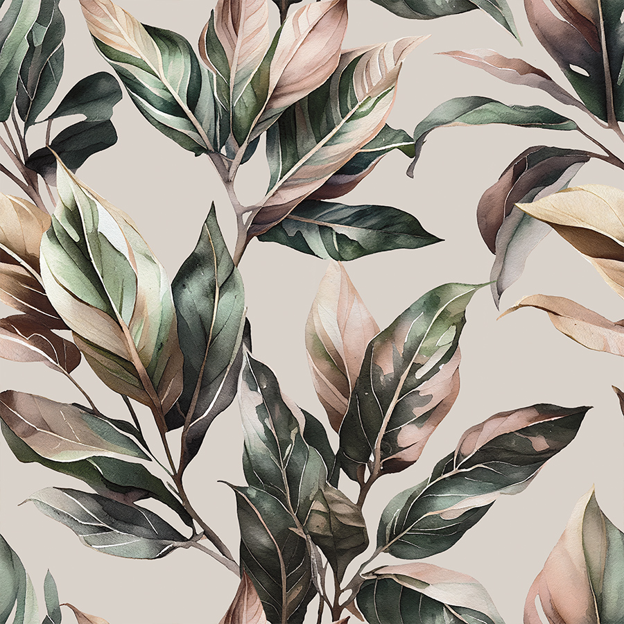 Tkanina welurowa beżowa z nadrukiem liści szerokość 165 cm SAMANTA