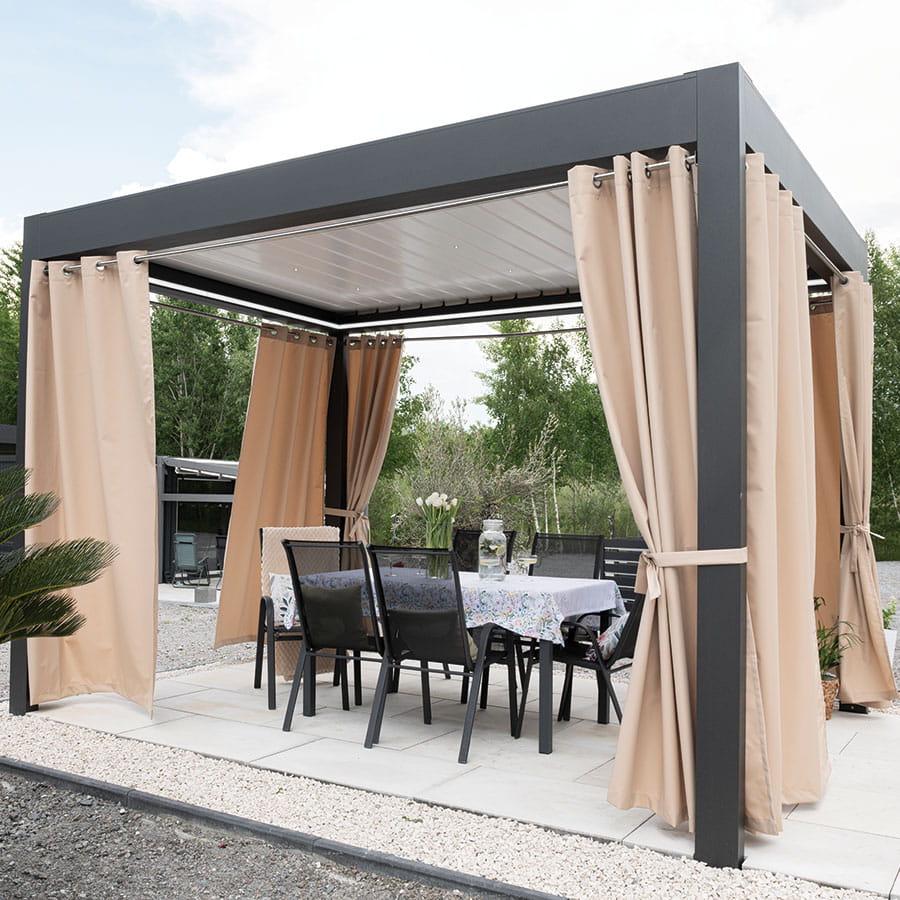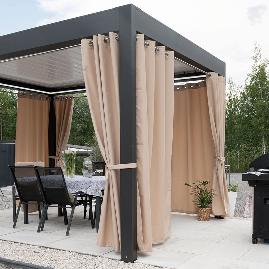 z powłoką akrylową, idealnie sprawdzi się w każdej przestrzeni zewnętrznej. Wodoodporne wykończenie chroni przed deszczem oraz wilgocią, a struktura płótna dodaje tkaninie naturalnego uroku. Tkanina przeznaczona do użytkowania na tarasie, pergoli, balkonie czy altanie. Wykończenie akrylem czyni ją bardziej odporną na zmienne warunki atmosferyczne.