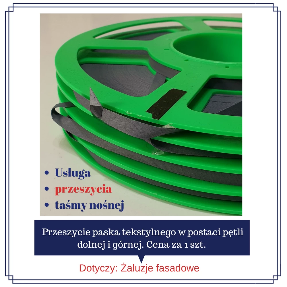 Profesjonalna usługa przeszycia górnej i dolnej pętli paska nośnego do żaluzji fasadowej.