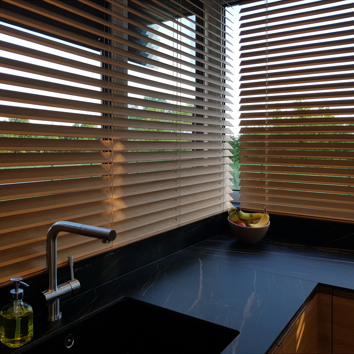 Prezentacja drabinki Megaview w żaluzji drewnianej 50 mm: