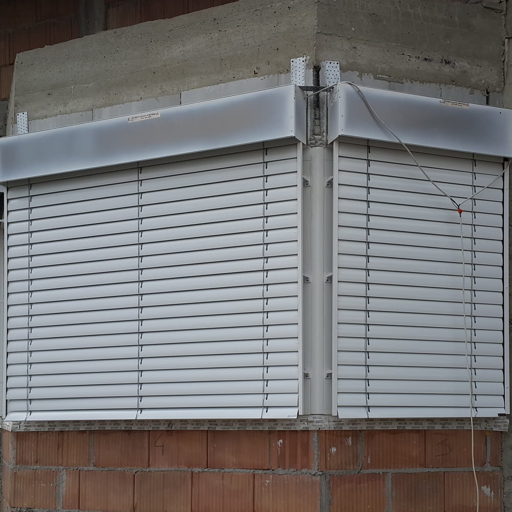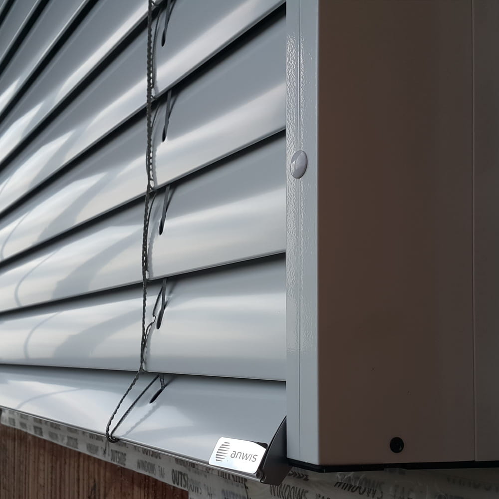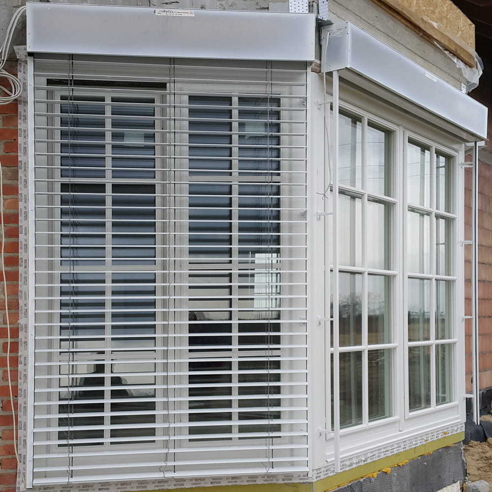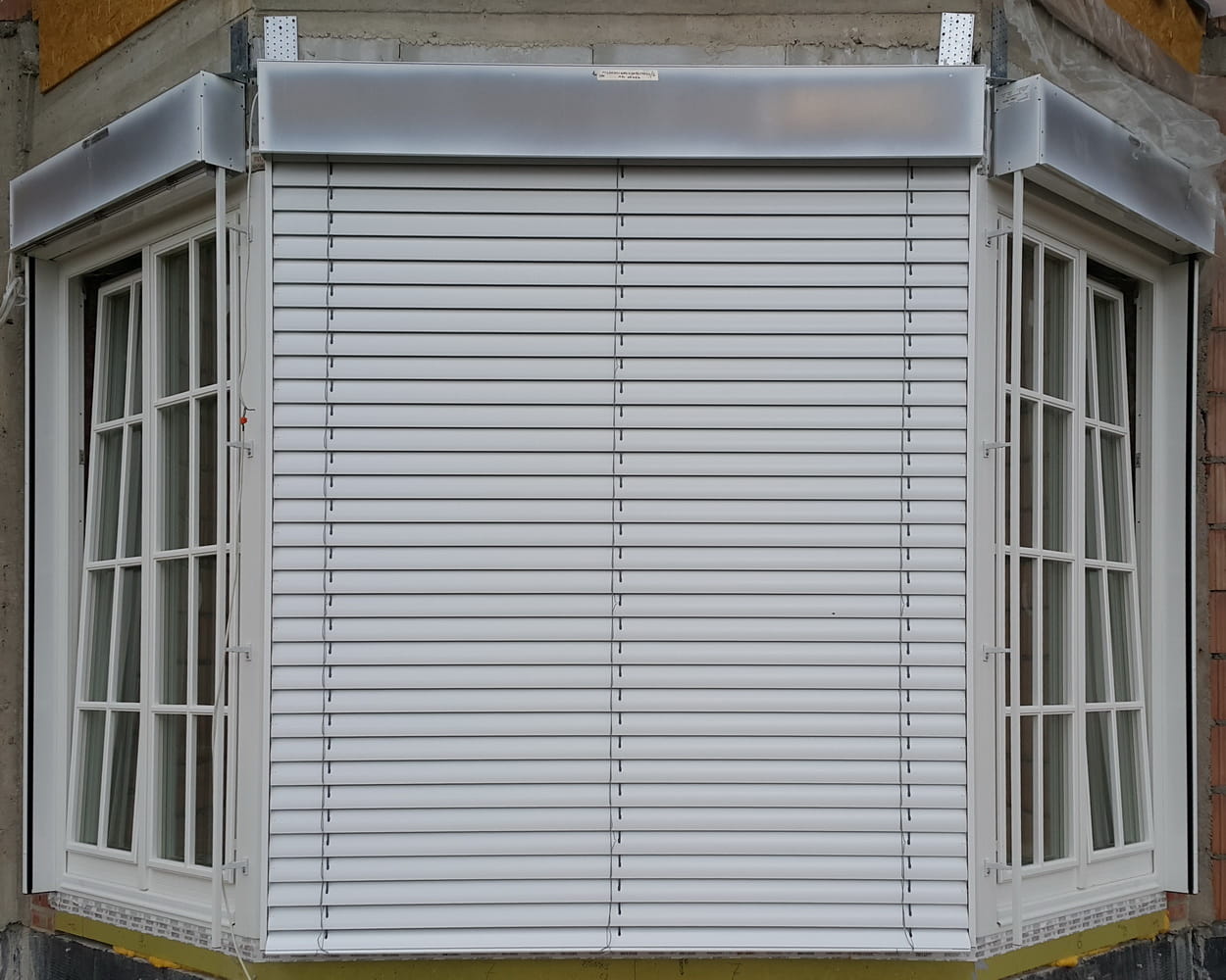 Widoczne są wyłącznie estetyczne lamele, które mogą zostać zwinięte do kasety umiejscowionej nad oknem pod elewacją.