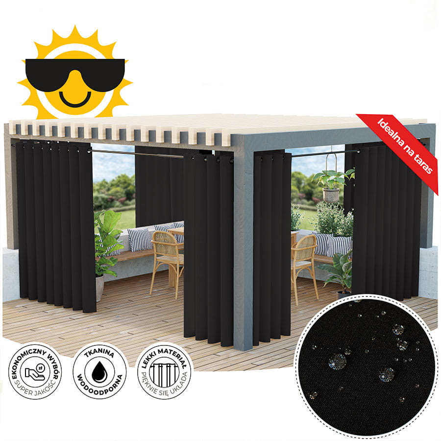 Zasłona balkonowa na przelotkach kolor czarny rozmiar 140x240 cm GARDENIA