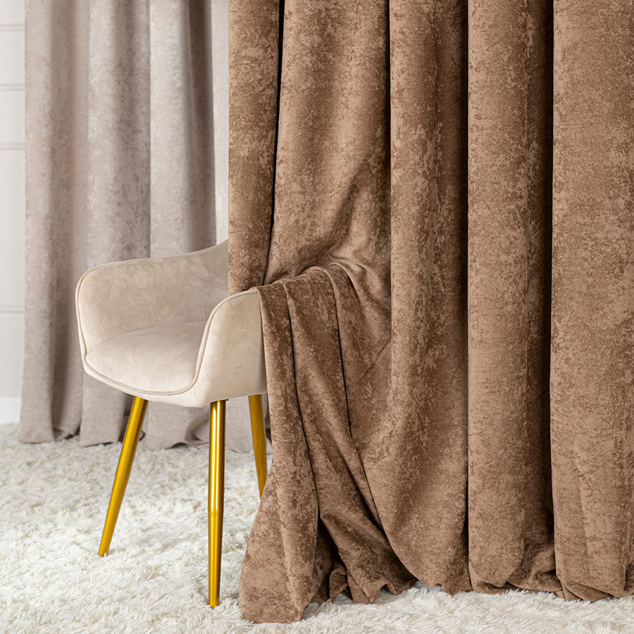 Zasłona gotowa welurowa jasna brązowa na przelotkach 140x260 cm 007/W21