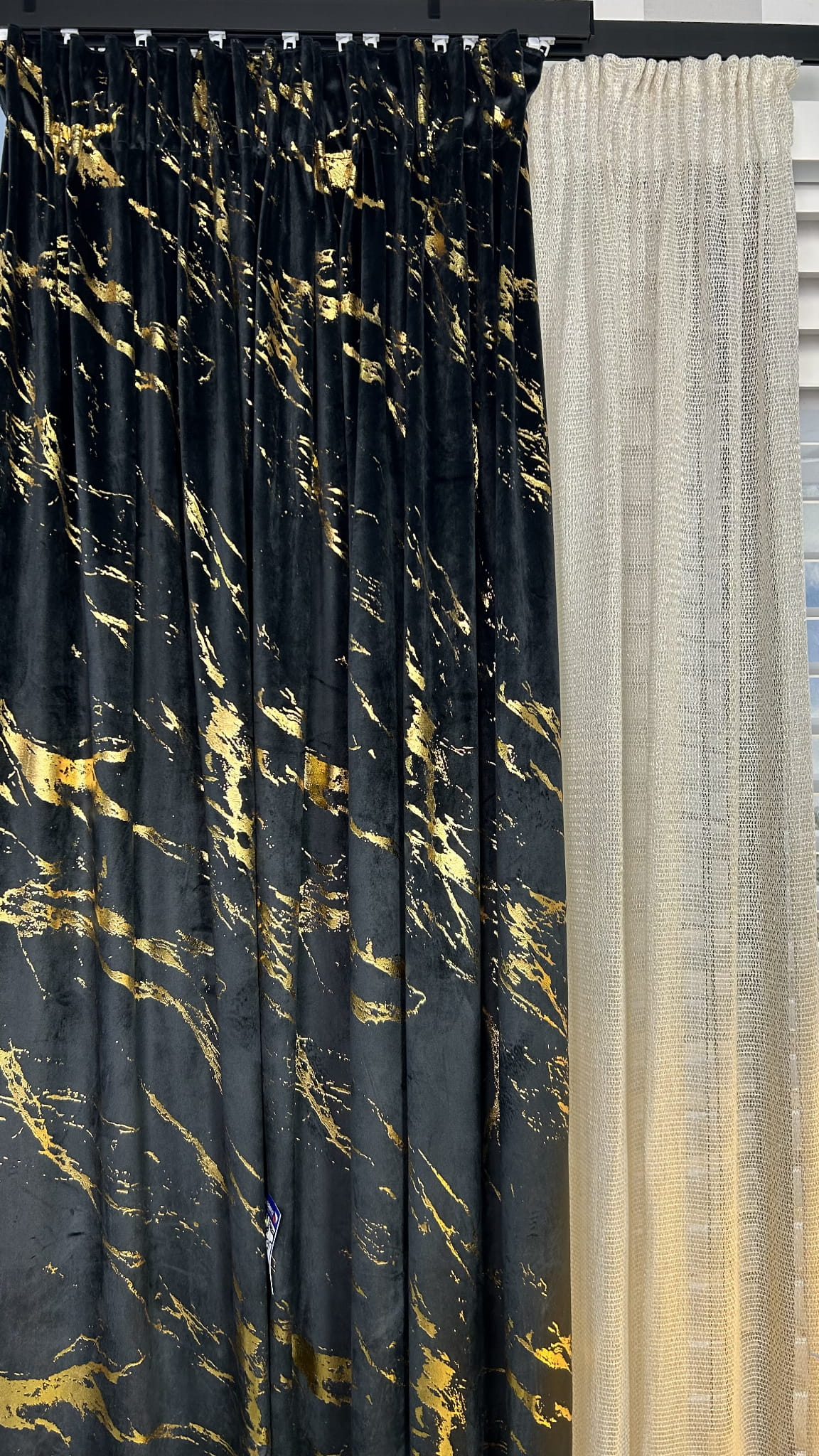 Zasłona marmurkowa na taśmie czarny ze złotym 140x270 cm AR3
