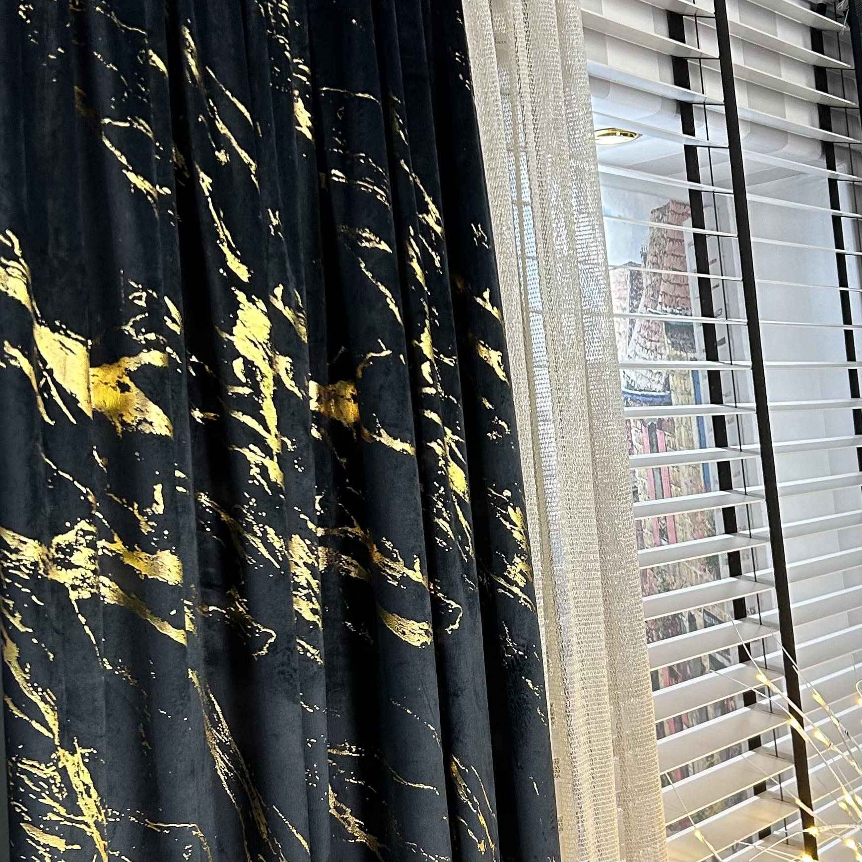 Gotowa zasłona welwetowa została uszyta z dbałością o najdrobniejsze szczegóły przy użyciu najwyższej jakości materiałów. Miękki, aksamitny welwet oraz prosta forma zasłony z nadrukiem przypominającym marmur, doskonale sprawdzi się jako dodatek do pomieszczeń w każdym stylu.