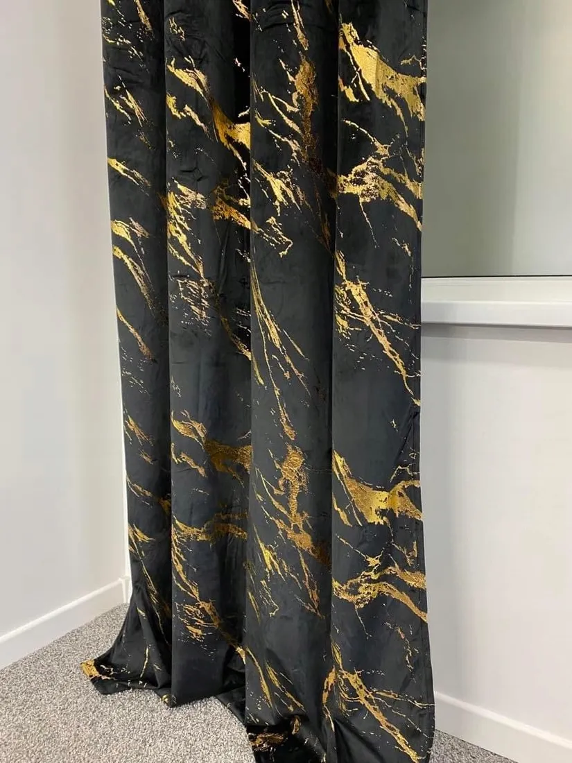 Zasłona welwetowa w kolorze czarnym ze złotym printem, rozmiar 140x270 cm.