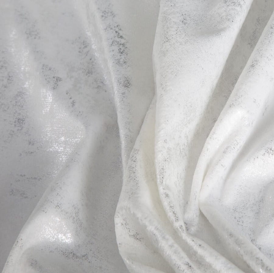 Zasłona welwetowa w kolorze białym z błyszczącym printem, rozmiar 140x250 cm.