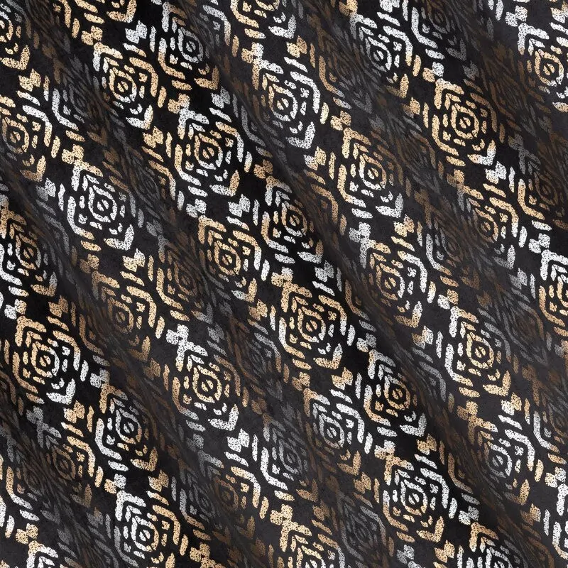 Gotowa zasłona welwetowa została uszyta z dbałością o najdrobniejsze szczegóły przy użyciu najwyższej jakości materiałów. Miękki, aksamitny welwet oraz prosta forma zasłony z dekoracyjnym złotym i srebrnym nadrukiem, doskonale sprawdzi się jako dodatek do pomieszczeń w każdym stylu.