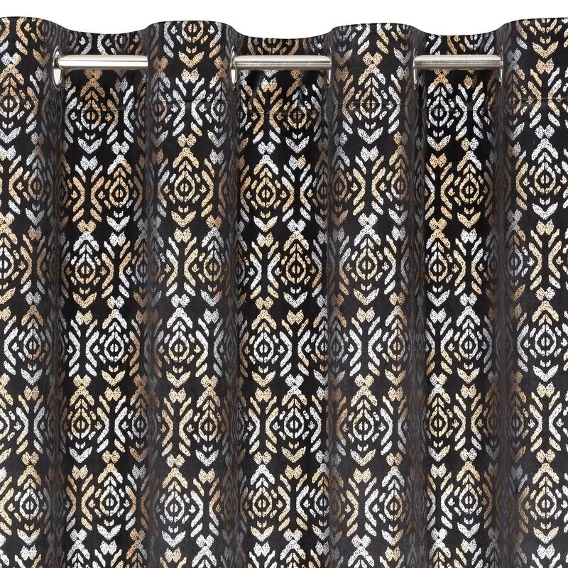 Zasłona na przelotkach czarna ze wzorem do pokoju 140x250 cm M33