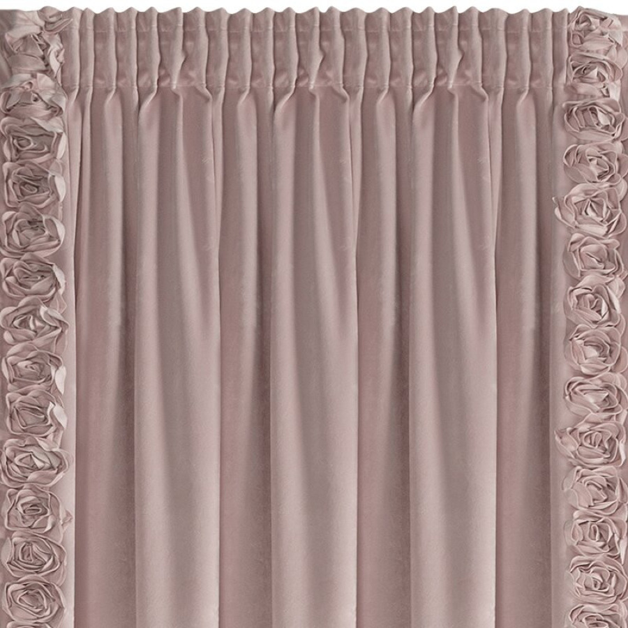 Zasłona pudrowa w kwiaty na taśmie z pasem róż na brzegach 140x270 cm EM11