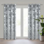 Zasłona stalowa ze srebrnymi kwiatami na przelotkach do salonu 140x250 cm M43