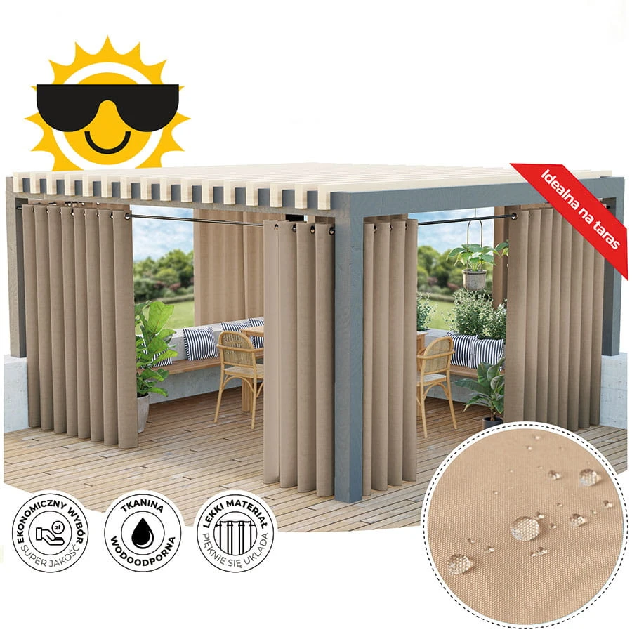 Zasłona tarasowa na przelotkach kolor nude rozmiar 140x240 cm GARDENIA