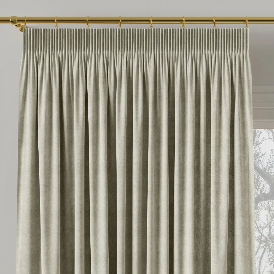 Zasłona została wykonana z gęstego, przyjemnego w dotyku weluru, który subtelnie połyskuje w świetle i zapewnia doskonałe krycie okna. Specjalna taśma pozwala na dowolność montażu: możesz ją tradycyjnie przypiąć żabkami, użyć agrafek lub wsunąć bezpośrednio na rurkę karnisza. To idealne rozwiązanie dla osób ceniących szybkie metamorfozy wnętrz bez rezygnacji z efektownego wyglądu.