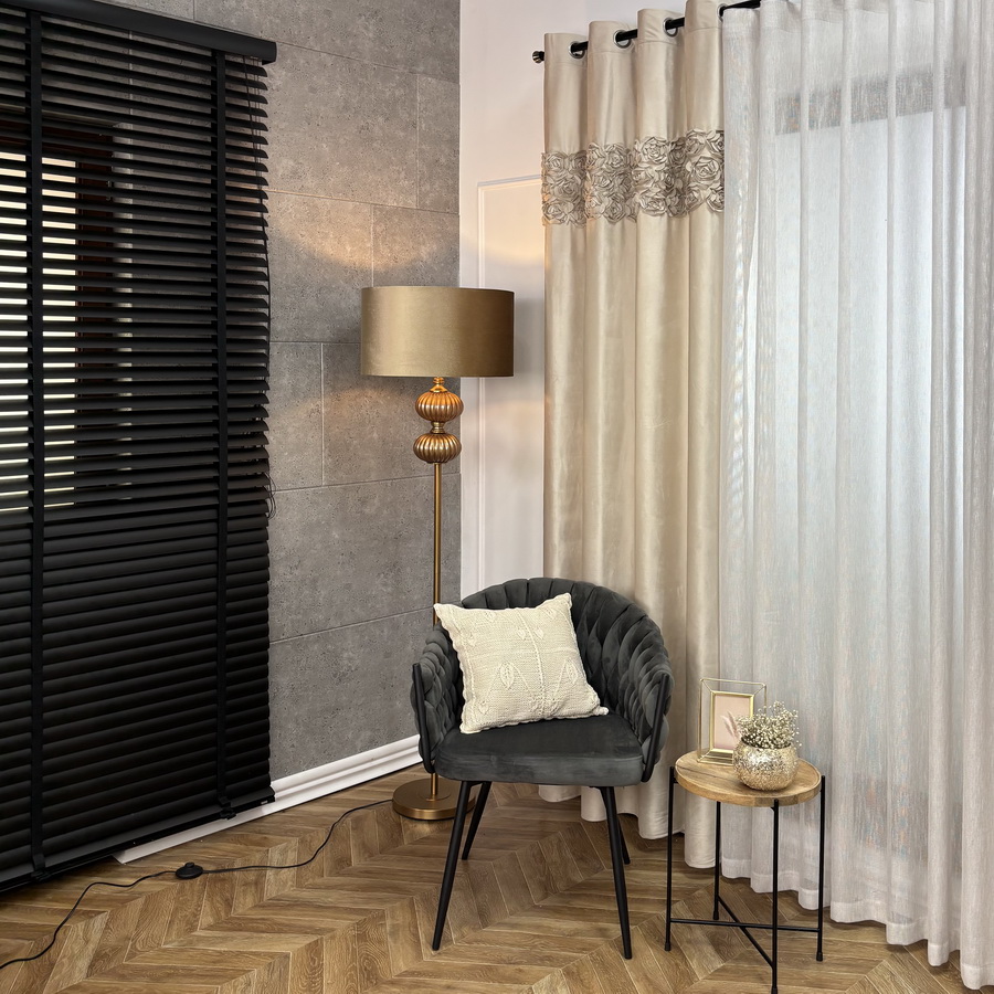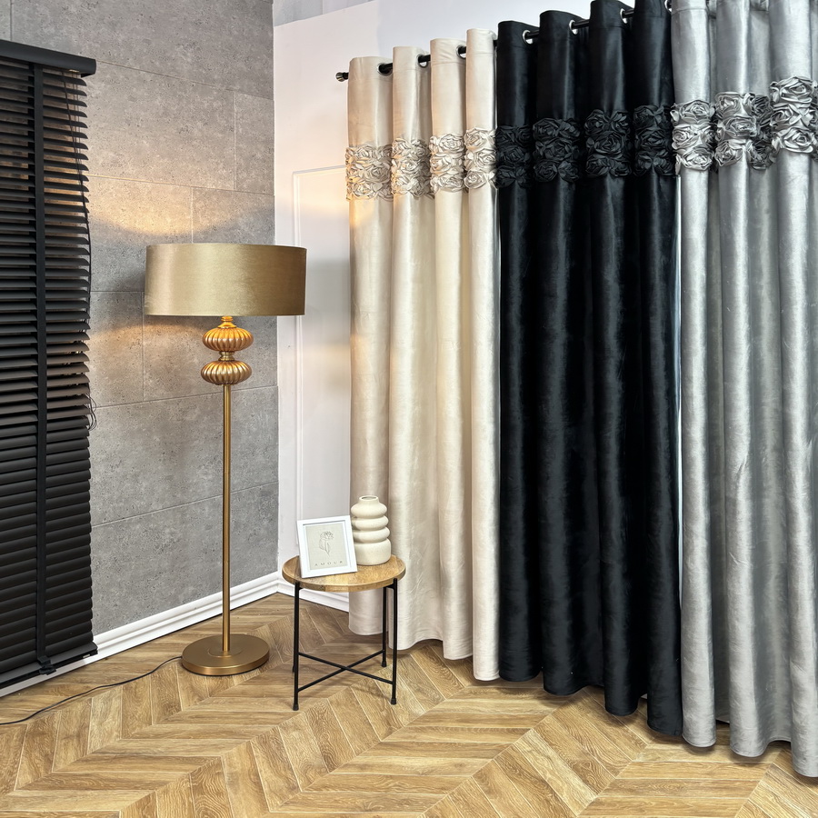 z wysokogatunkowej tkaniny welwetowej, wykończona u góry dekoracyjnym wzorem pasowym, to elegancka dekoracja okna, która łączy w sobie styl i funkcjonalność. Jej wyjątkowość podkreśla naszyty, pasowy wzór z kwiatów róż, który dodaje romantycznego i eleganckiego charakteru. Zasłona zachwyca aksamitnym dotykiem i głębokim, nasyconym kolorem, dodając wnętrzu przytulności i szlachetnego wyglądu. Stanowi idealne dopełnienie aranżacji wnętrza, a mocowanie na praktycznych przelotkach sprawia, że tkanina układa się w estetyczne, regularne fale. Dzięki temu zasłona jest nie tylko piękna, ale również praktyczna w codziennym użytkowaniu.