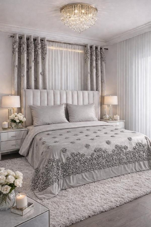 Zasłona welwetowa szara na przelotkach z naszytymi różami 140x250 cm AR22
