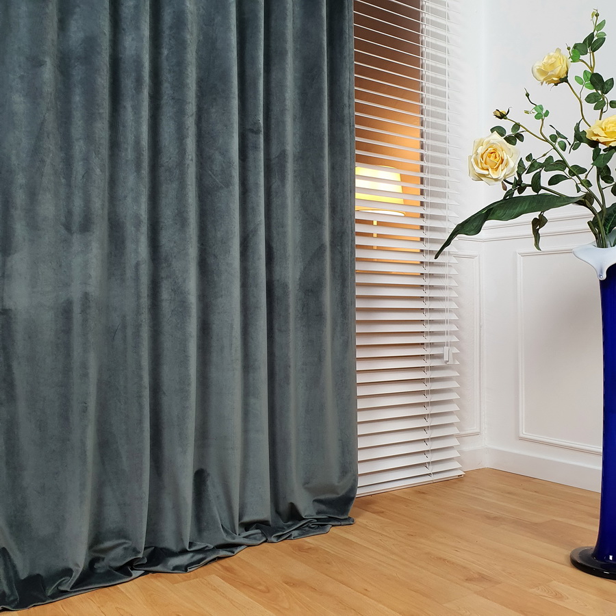 Nowoczesna zasłona z miękkiego weluru o aksamitnej strukturze i ponadczasowej elegancji, zasłania przed spojrzeniami ciekawskich oczu, promieniami słonecznymi, światłami z latarni ulicznych.